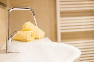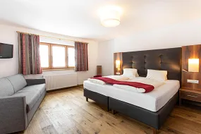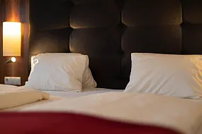 Boxspringbeds and a leather headboard. Wood furniture desk and wardrobe. wooden floors or carpet. newly renovated bathrooms and walk in shower. toilet, safe, hairdryer.